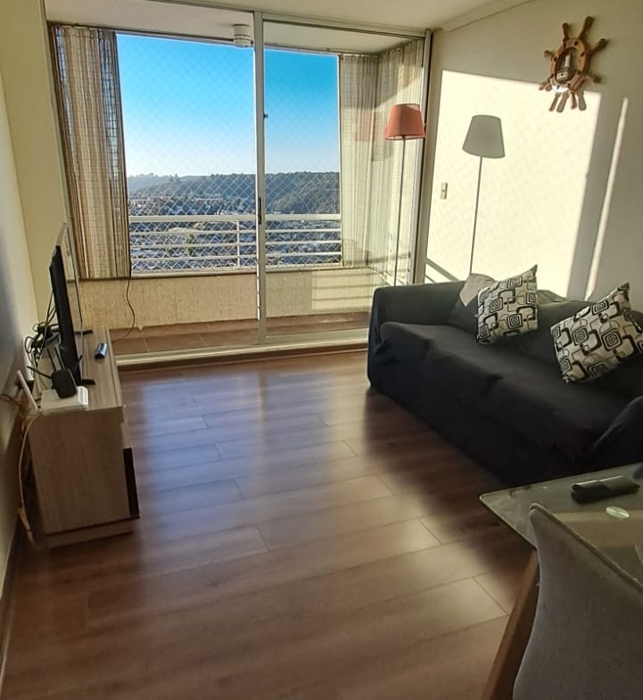 En venta Precioso departamento amoblado en Reñaca Alto Se vende amplio y luminoso departamento completamente amoblado, con excelentes terminaciones y dos terrazas que permiten disfrutar de una espectacular vista durante todo el año. Su diseño moderno y funcional lo convierte en una excelente oportunidad para vivir o invertir en una de las zonas con mayor plusvalía de Viña del Mar. Características principales: El departamento cuenta con tres dormitorios (principal en suite), dos baños con ventilación natural, amplio living-comedor, cocina amoblada y equipada con logia, además de dos terrazas, una de ellas cerrada con termopanel para mayor confort. Incluye estacionamiento y bodega. Equipamiento interior: Piso flotante en living, pasillos y dormitorios, cubiertas de mármol, agua caliente por caldera independiente. Se entrega completamente amoblado, con muebles, camas, televisor en living-comedor, refrigerador, lavadora, horno empotrado, encimera y citófono. Equipamiento del condominio: El edificio pertenece a un condominio de categoría Premium, que ofrece quinchos panorámicos, gimnasio con vista privilegiada y acceso controlado con seguridad permanente las 24 horas. Ubicación privilegiada: Emplazado en un tranquilo sector residencial de Reñaca Alto, cercano a colegios, supermercados, Clínica Reñaca, playas y restaurantes. A solo 15 minutos del centro de Viña del Mar, con excelentes accesos y conectividad a transporte público. Una propiedad ideal para quienes buscan comodidad, buena ubicación y una excelente calidad de vida